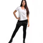This is a women's blouse with short sleeves. The v-shaped neckline will optically lengthen the neck. The T-shirt has a fitted and waisted cut that will accentuate your figure.