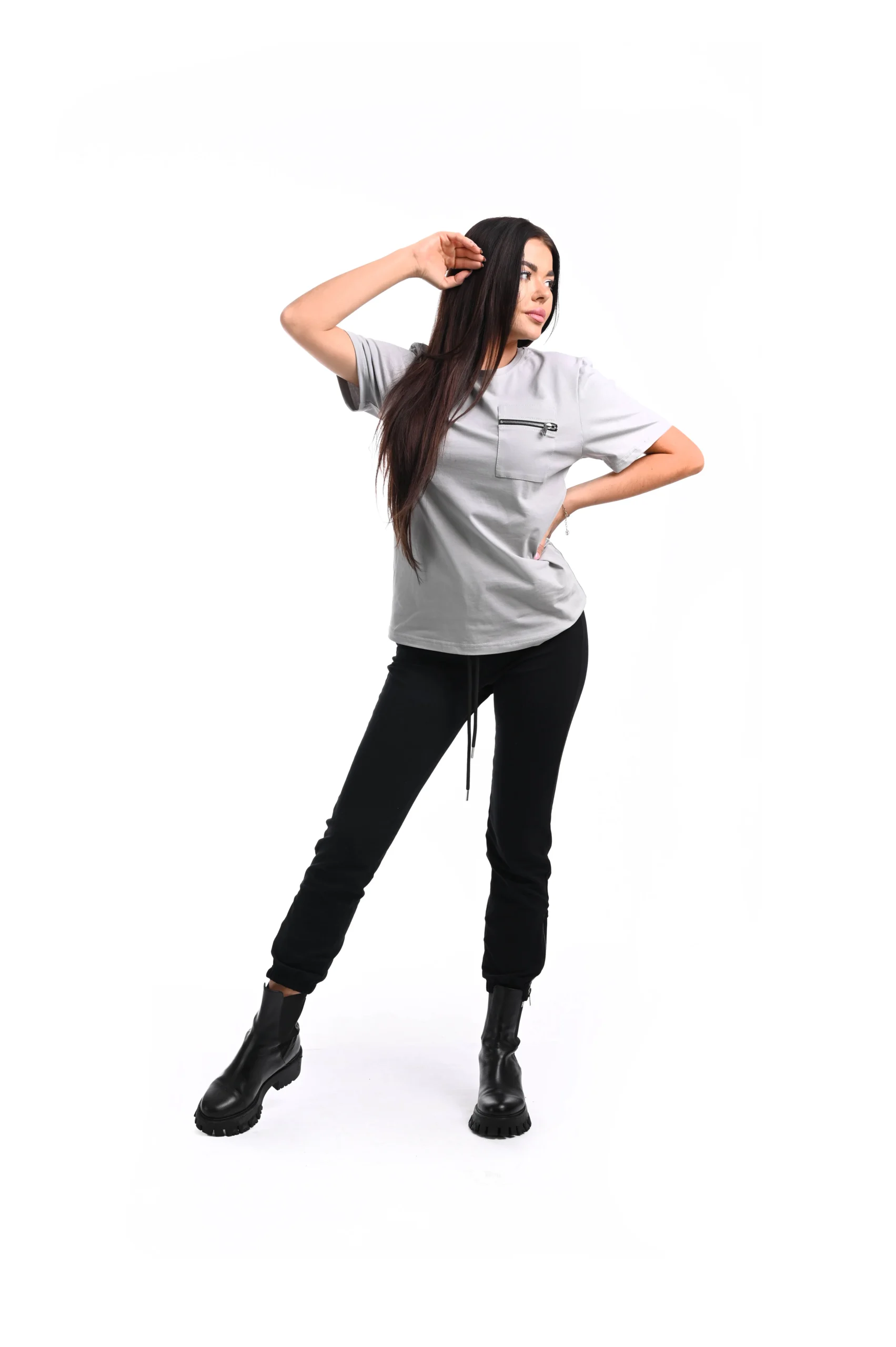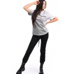 This is a women's blouse with short sleeves. Gently rounded neckline and looser cut for lovers of masculine style 🙂 .