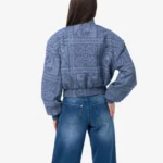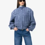 Kurtka typu bomber o nowoczesnym, dopracowanym kroju, wykonana z żakardowej tkaniny o dekoracyjnym, ornamentalnym wzorze. Podwyższona stójka oraz elastyczne wykończenie u dołu i przy mankietach nawiązują do klasycznej formy, nadając całości współczesny, lekko sportowy charakter. Swobodna linia rękawów buduje objętość, zachowując przy tym elegancki, wyważony wygląd. Model zapinany na zamek ukryty pod listwą, z dyskretnie wkomponowanymi kieszeniami. Wykonany z wieloskładnikowej tkaniny z dodatkiem wełny, zapewnia komfort noszenia, a wiskozowa podszewka podnosi wygodę użytkowania.