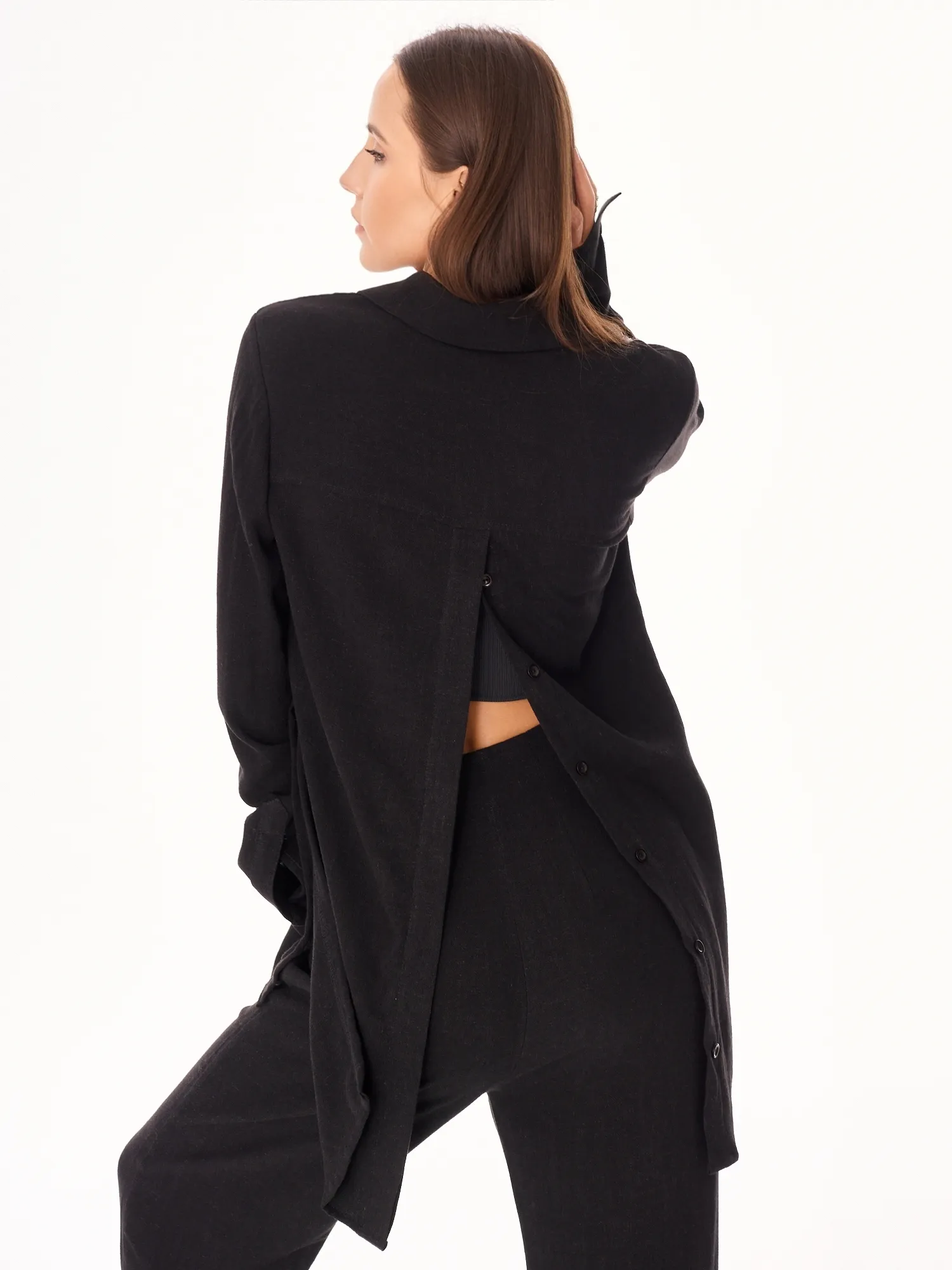 Koszulę nosić można standardowo, bądź zdecydować się na rozpięte guziki na plecach, by dodać jej charakteru. Wysokie rozcięcia po bokach zapewniają swobodę ruchów, a w cieplejsze dni przynoszą powiew ulgi.