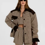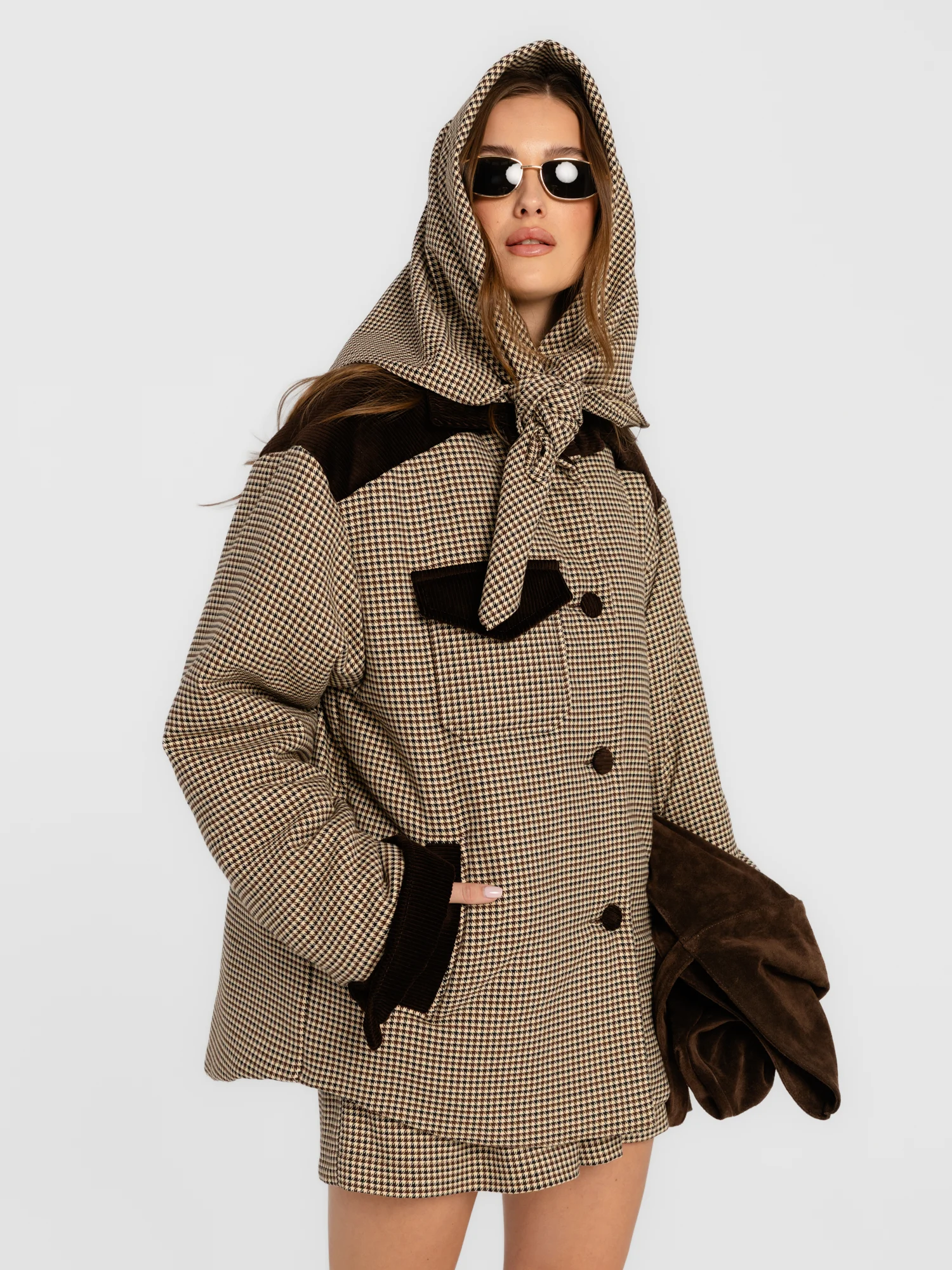 Najniższa cena ( 2025-10-15 ): 1 299,00 złKurtka o wyrazistym, oversize’owym charakterze. Wykonana z tkaniny w klasyczną pepitkę z kontrastującymi wstawkami z miękkiego sztruksu. Połączenie dwóch faktur nadaje głębi i nieoczywistej elegancji. Luźny, lekko pudełkowy krój z obniżoną linią ramion tworzy nowoczesną sylwetkę o nonszalanckim wyrazie. Duże guziki i dopracowane detale podkreślają rzemieślniczy charakter wykonania. Model idealny na chłodniejsze dni — stanowi stylowy akcent w codziennych stylizacjach.