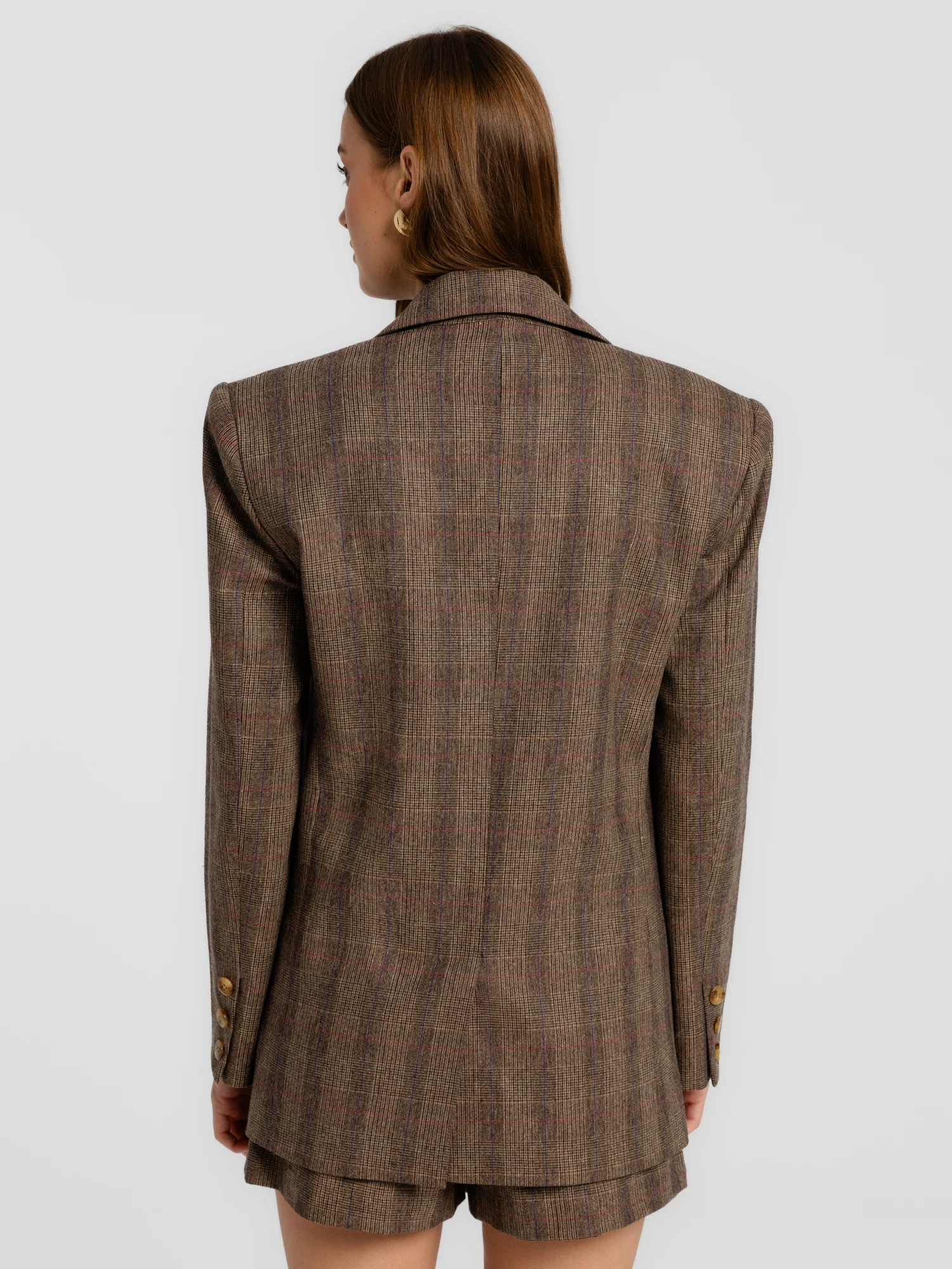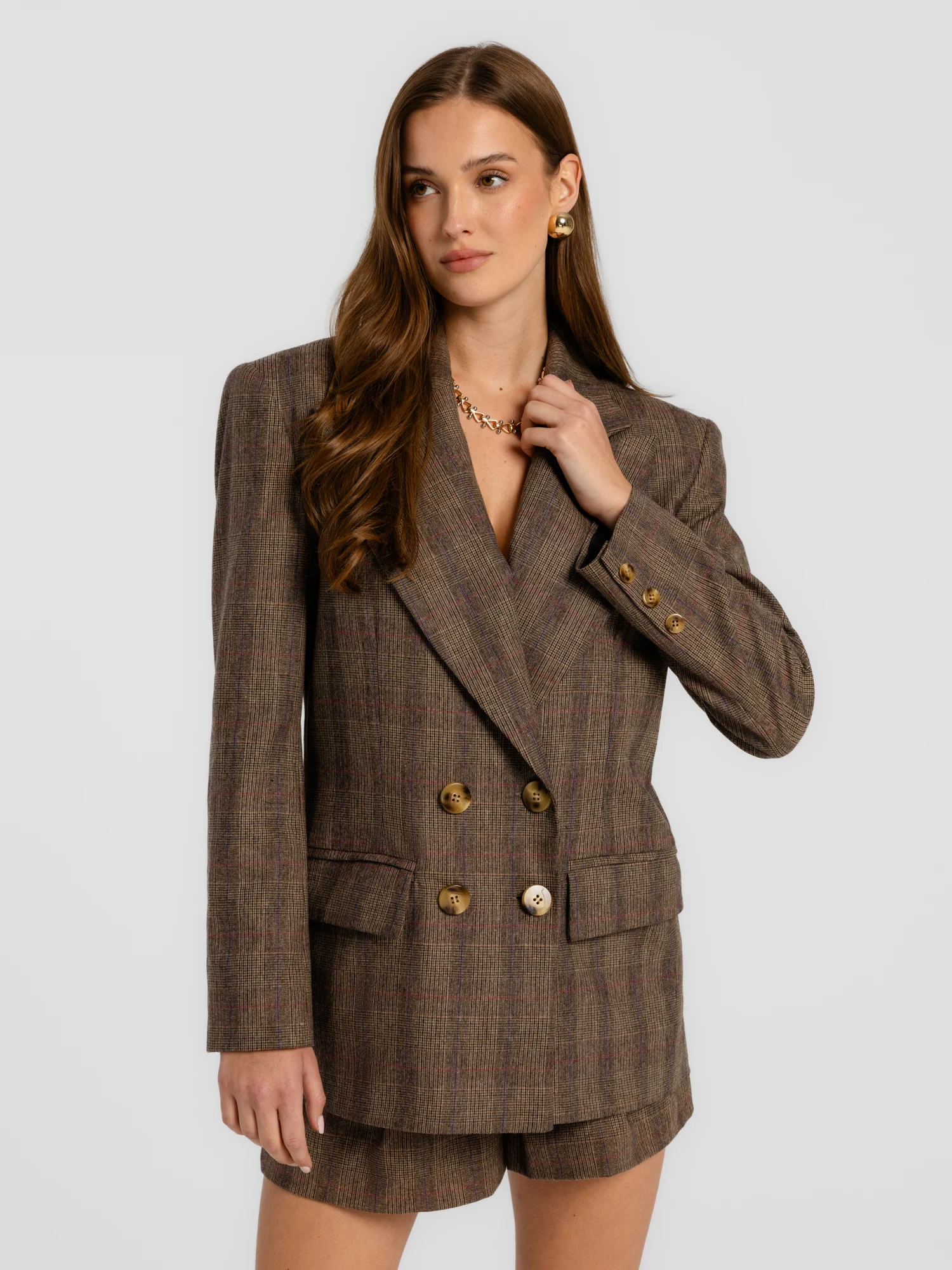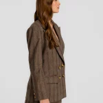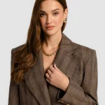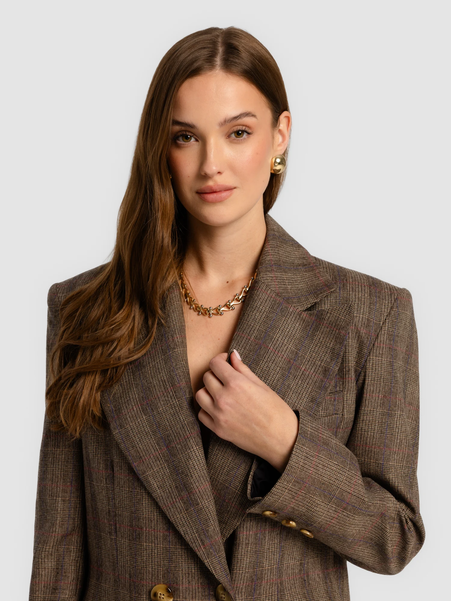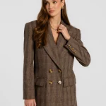 Najniższa cena ( 2025-10-15 ): 1 599,00 złMarynarka o konstrukcji inspirowanej klasycznym krawiectwem, z wyraźnie zaznaczoną linią ramion i poszerzonymi klapami. Dwurzędowe zapięcie podkreśla elegancki, ponadczasowy charakter projektu. Wyrazisty deseń w kratę i precyzyjne przeszycia nadają całości szlachetności. Wykonana z materiału o zawartości 80% wełny, doskonale sprawdzi się zarówno w stylizacjach formalnych, jak i codziennych.