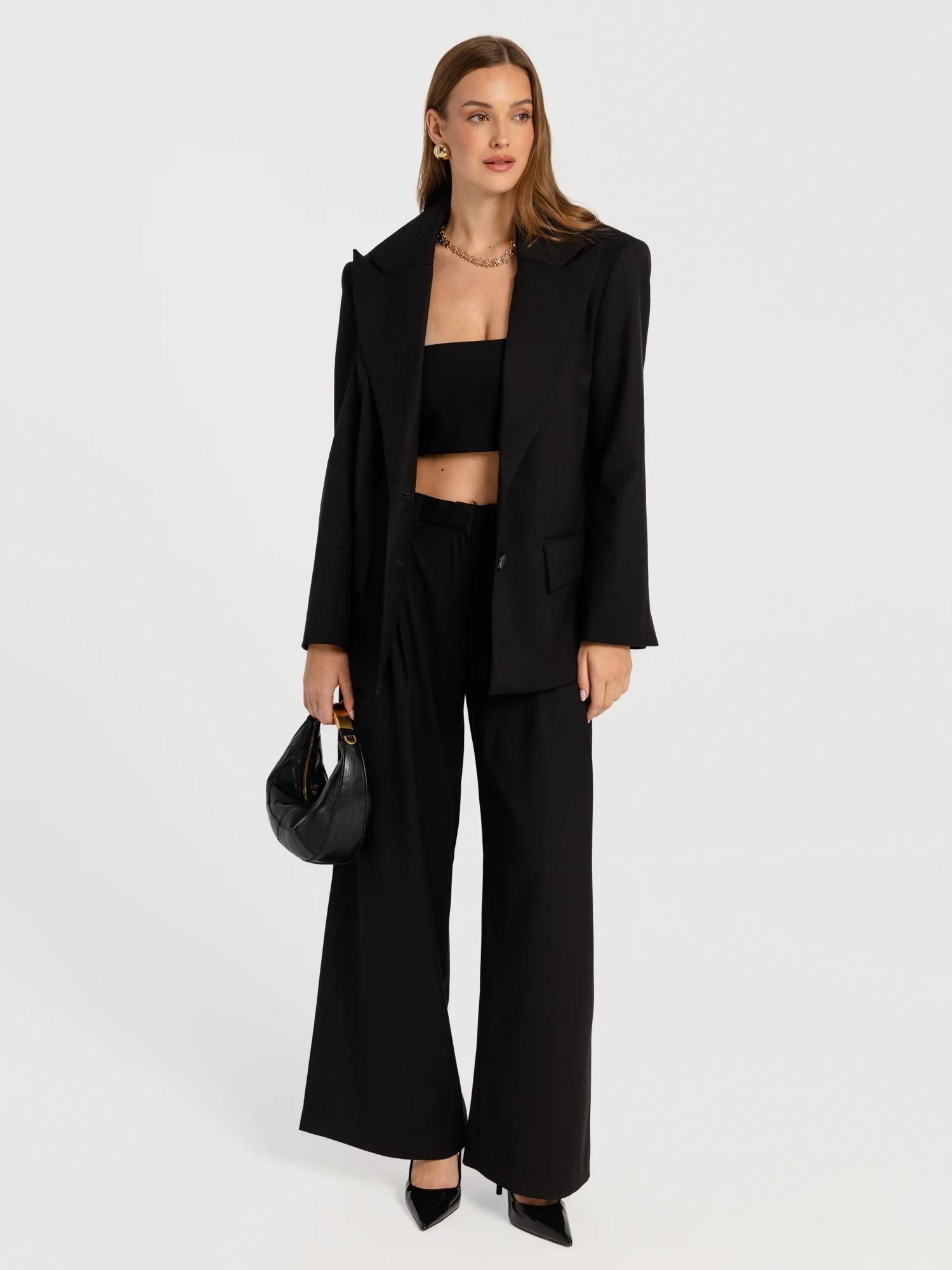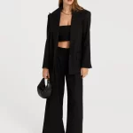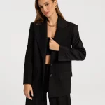 Najniższa cena ( 2025-10-15 ): 1 599,00 złMarynarka o lekko oversize’owej formie, zapinana na dwa guziki. Szerokie klapy i mocna linia ramion nadają całości wyważony, architektoniczny kształt. Minimalistyczny i ponadczasowy krój. Wykończona podszewką wewnętrz. Uszyta z wiskozowego materiału o gładkiej strukturze.