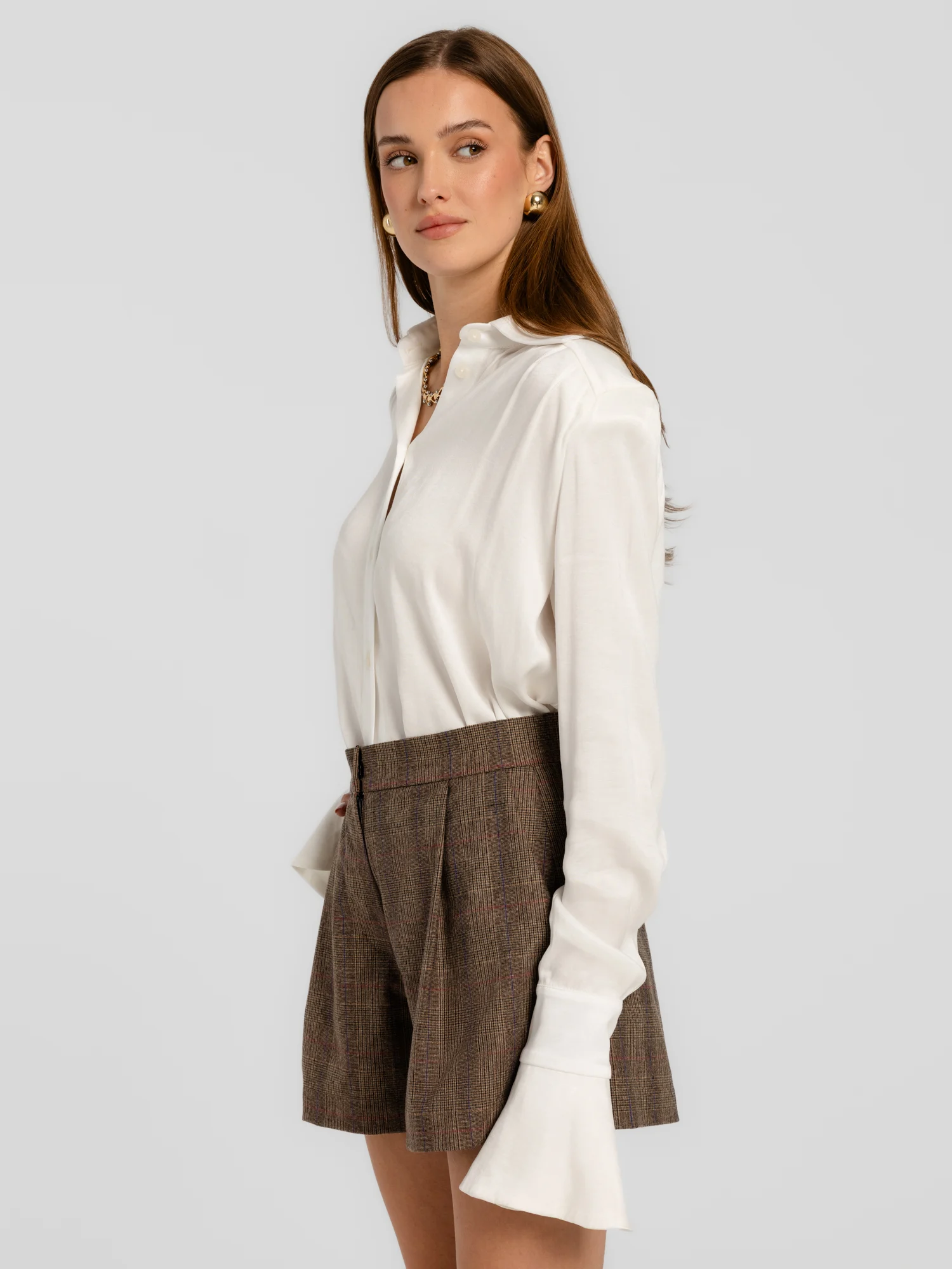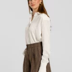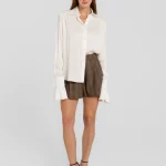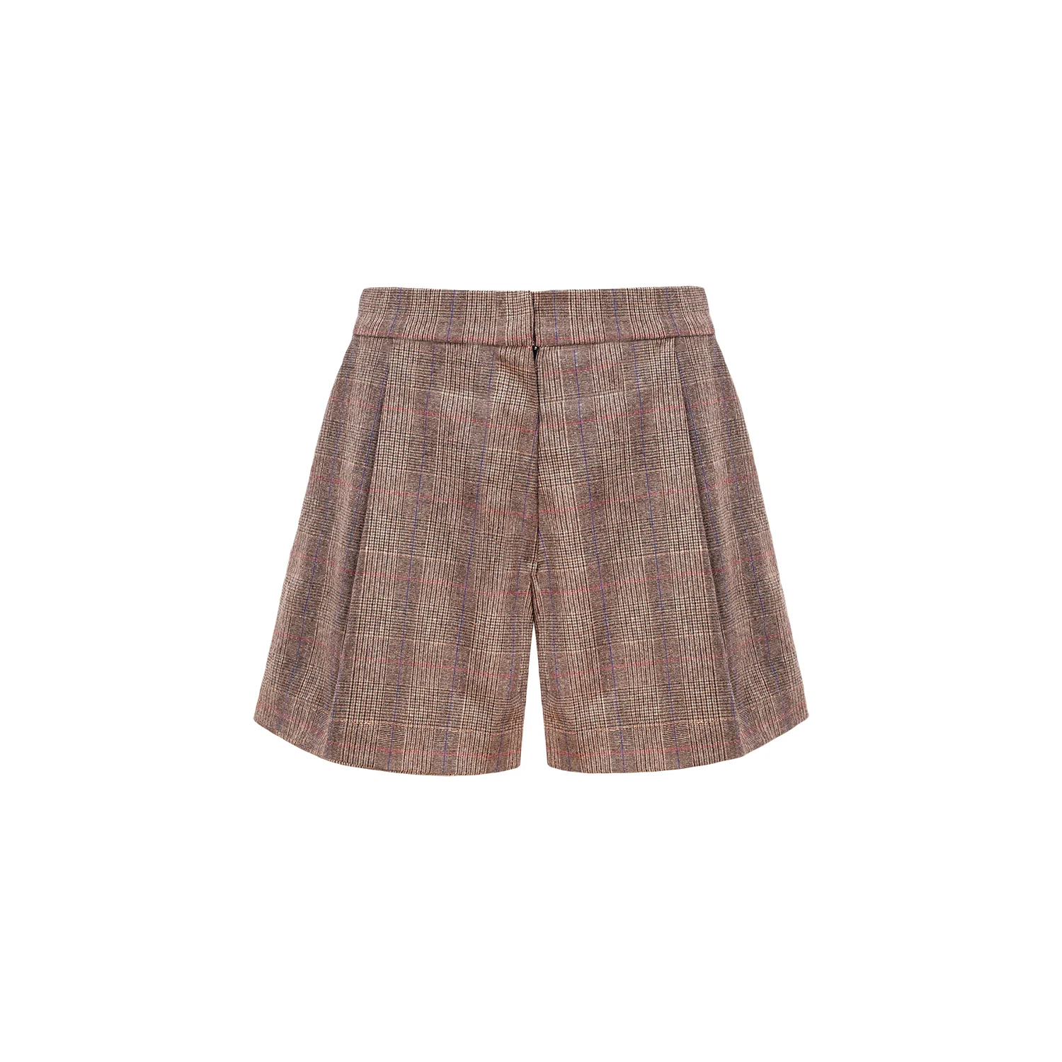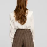 Najniższa cena ( 2025-10-15 ): 799,00 złSzorty o konstrukcji inspirowanej klasycznymi spodniami garniturowymi, wykonane z wełnianej tkaniny w kratę z subtelnie kontrastującą nitką. Delikatne zakładki z przodu i lekko rozszerzana nogawka tworzą zrównoważoną linię, nadają sylwetce proporcji i swobody. Wysoki stan akcentuje talię, a gładki pas z wewnętrznym zapięciem na haftkę utrzymuje czystą, minimalistyczną formę. Ponadczasowa uniwersalność stylizacji — od codziennych po bardziej eleganckie.