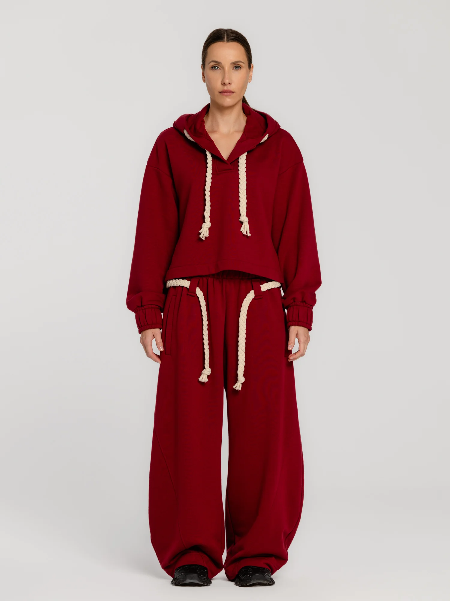 Najniższa cena ( 2025-10-15 ): 999,00 złBawełniane spodnie o swobodnej, lekko zaokrąglonej linii nogawki. Wykończone elastycznym pasem dla maksymalnego komfortu noszenia. Charakterystycznym elementem jest pleciony, bawełniany pasek w kontrastowym kolorze, który nadaje całości nonszalanckiego akcentu. Subtelne przeszycia modelują sylwetkę, zachowując minimalistyczny charakter projektu. Oversize’owy krój podkreśla lekkość formy i nadaje swobody noszenia.