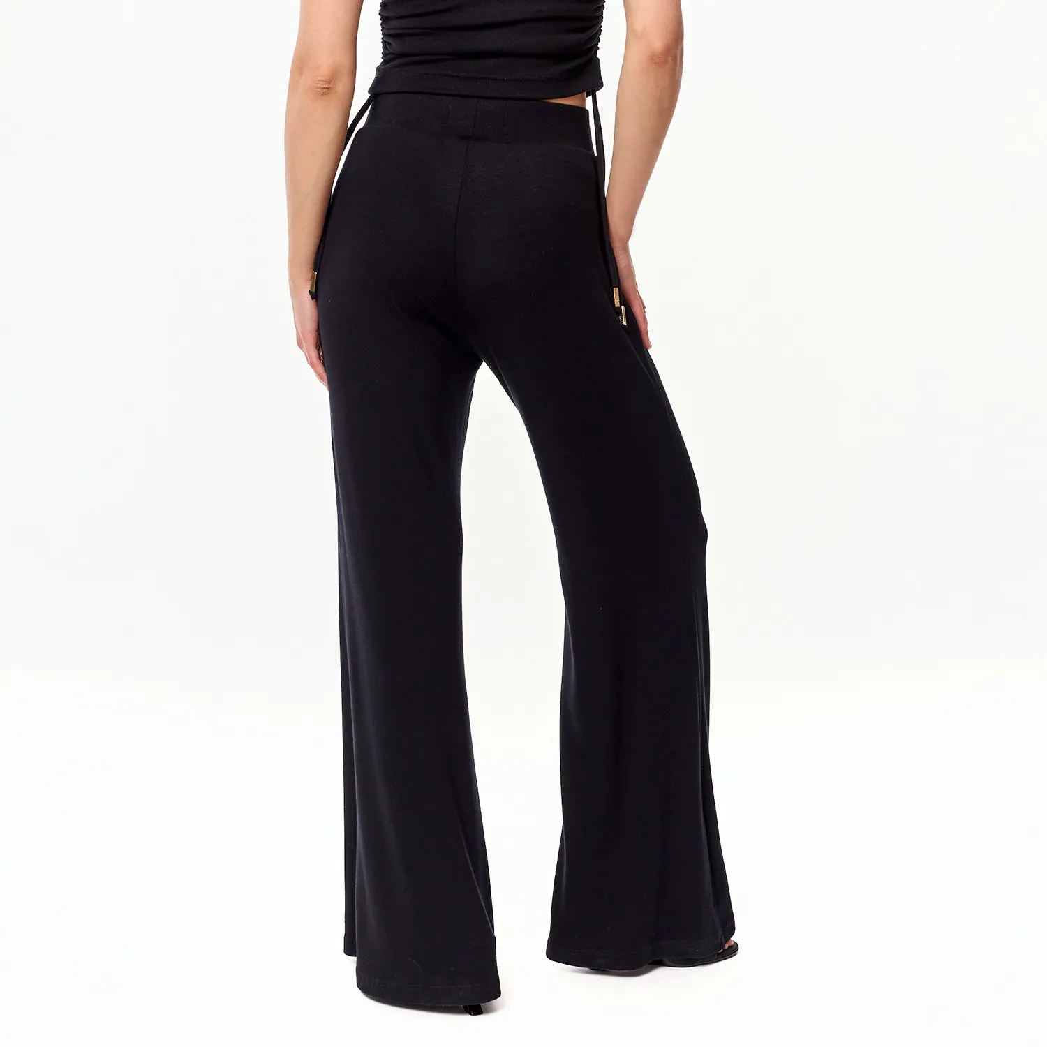 Szeroki, elastyczny pas w talii, nie tylko podkreśla sylwetkę, ale także gwarantuje wyjątkowy komfort. Prosty, ale stylowy krój z lekko rozszerzaną nogawką i wysokim stanem nadaje spodniom nowoczesnego charakteru, a luźniejszy fason lekkości.