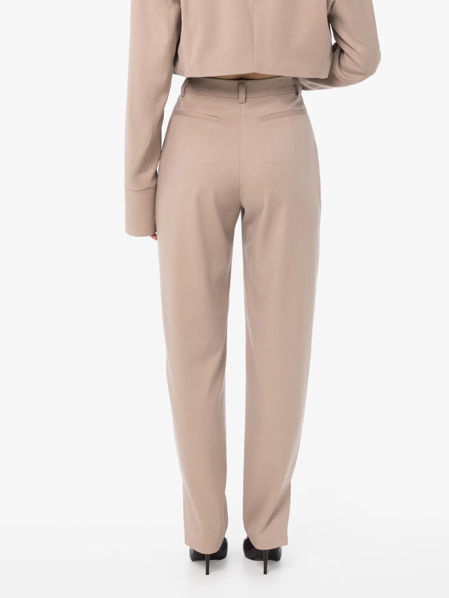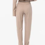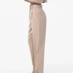 Spodnie z wysokim stanem, o lekko dopasowanej linii bioder i nogawkach zwężających się ku dołowi. Subtelne rozcięcia po bokach nadają całości lekkości i nowoczesnego charakteru, jednocześnie eksponując linię obuwia. Precyzyjnie skrojony fason optycznie wydłuża sylwetkę, podkreślając jej smukłość i elegancję. Minimalistyczna forma sprawia, że model doskonale wpisuje się zarówno w codzienne, jak i bardziej formalne stylizacje. Wykonane z miękkiej tkaniny z przewagą wiskozy, z dodatkiem poliestru i elastanu, gwarantują komfort, trwałość i swobodne dopasowanie. Noś z marynarką i topem MARLO, tworząc spójny, ponadczasowy zestaw.