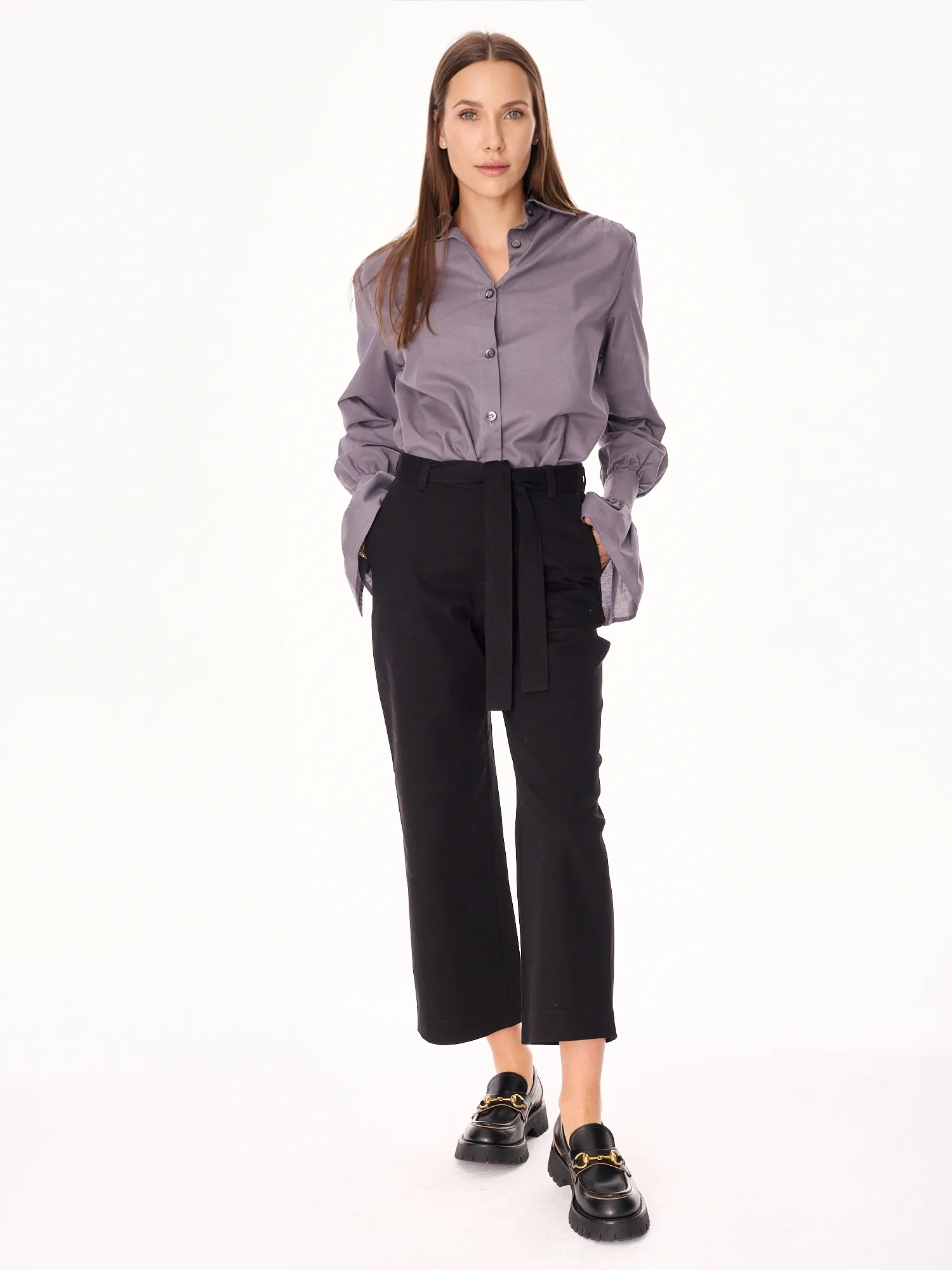 Długość 7/8 i prosty krój nadają spodniom nowoczesnego, a zarazem uniwersalnego charakteru. Ich klasyczny fason sprawia, że są idealnym rozwiązaniem na wiele okazji – zarówno na co dzień, jak i na bardziej casualowe wyjścia. Proste nogawki doskonale komponują się z szeroką gamą górnych elementów, tworząc stylowe i komfortowe zestawy.