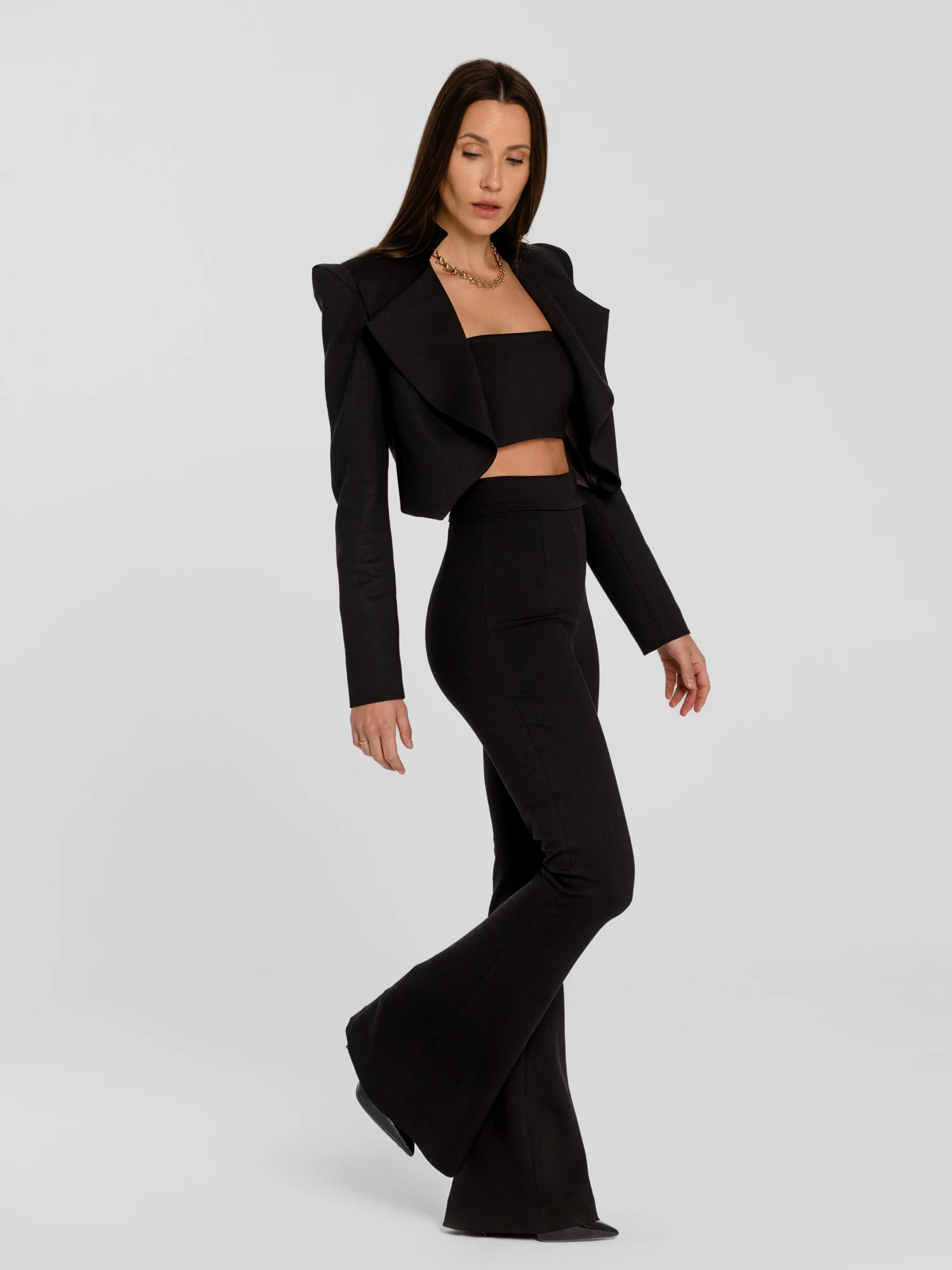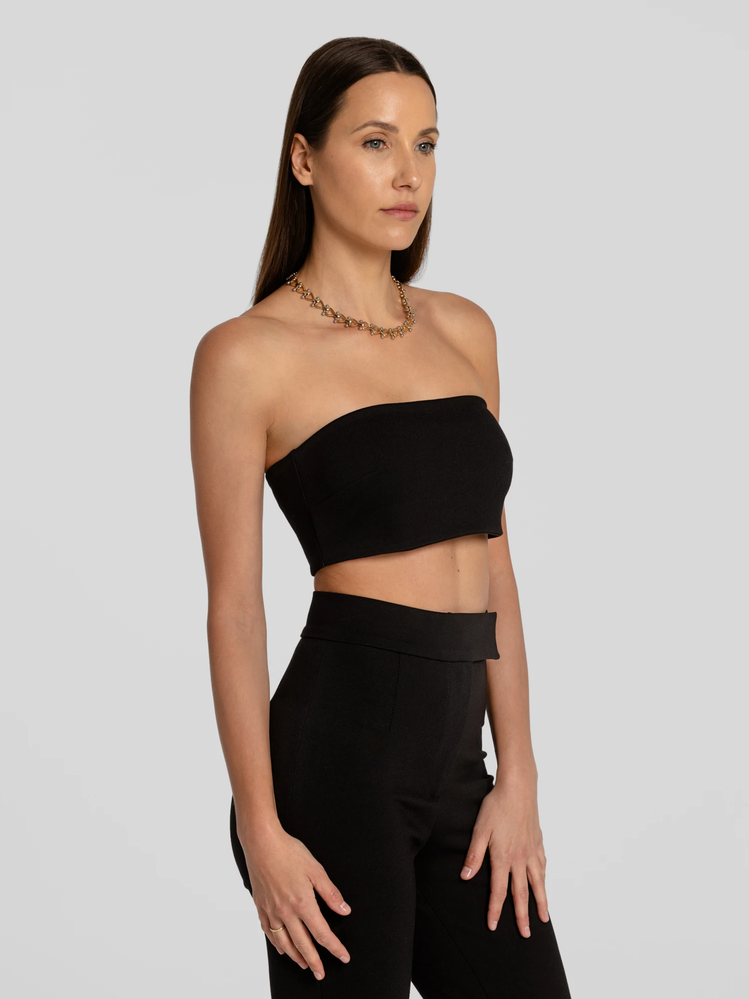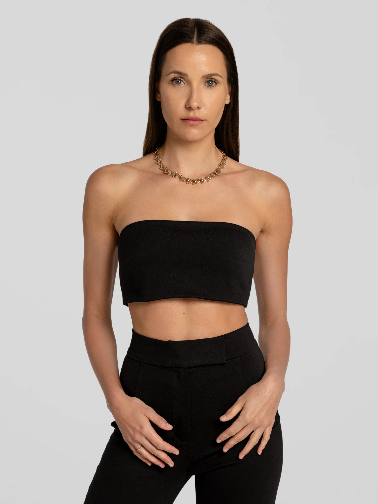 Top o minimalistycznej formie, zapinany z tyłu na suwak. Dopasowany fason podkreśla linię sylwetki. Wykonany z elastycznej, wiskozowej tkaniny, która zapewnia komfort i idealne dopasowanie. Gładka, jednolita struktura stanowi doskonałą bazę zarówno do formalnych, jak i wieczorowych stylizacji. Noś w komplecie z marynarką i spodniami Vanya.